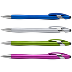 This metallic pen with a stylus at the top is the perfect 2-in-1 advertising gift. It features a sleek metallic barrel, matching clip, polished chrome accents and a professional stylus. Best of all, you can customize it with your silkscreen imprint that will pop against the fun, bright metallic barrel colors. Pick up a bundle today to have your customers thanking you for adding style and color to their days!